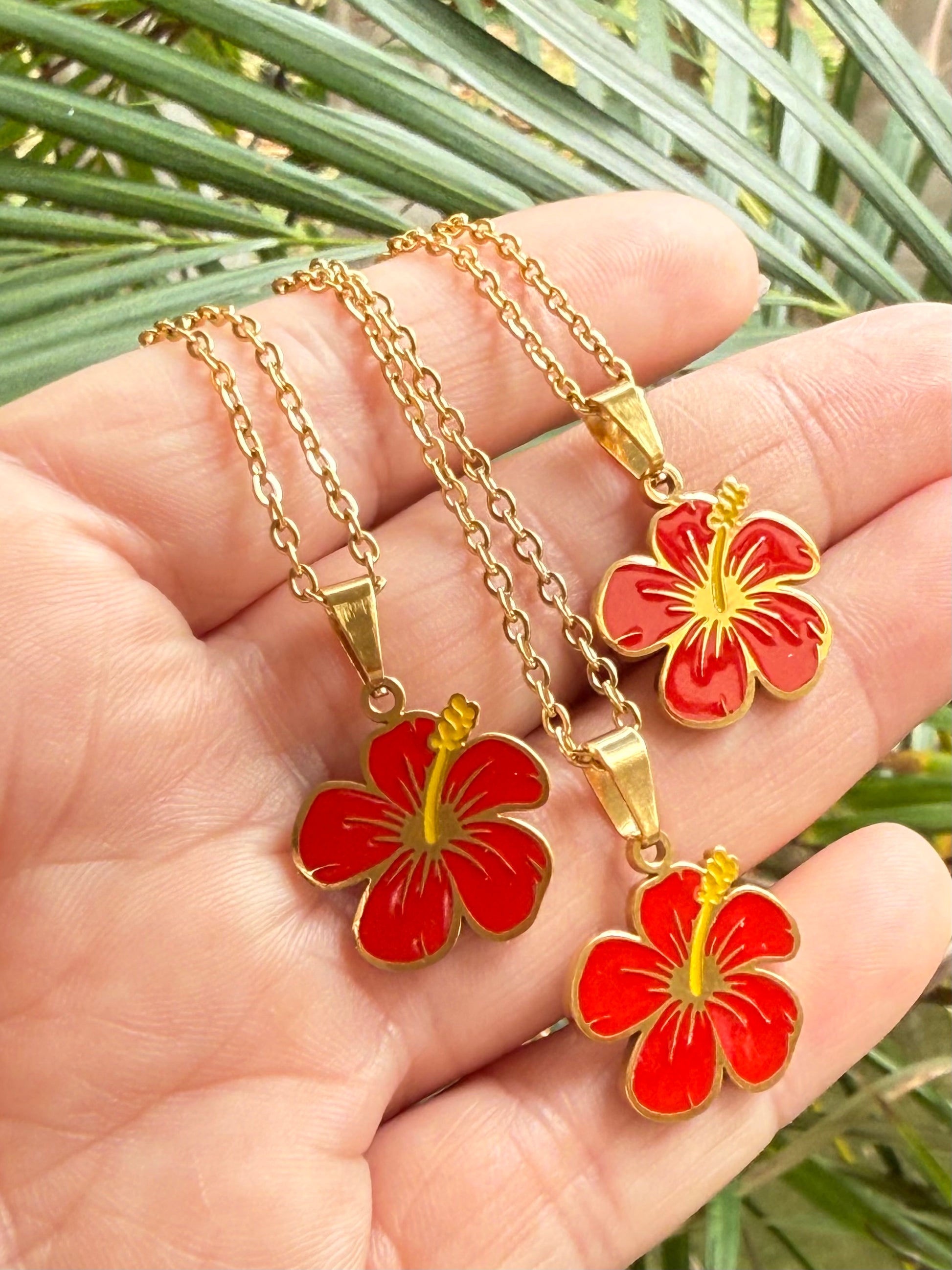 Hermosa cadena en acero inoxidable con dije de amapola. Cadena mide 16”